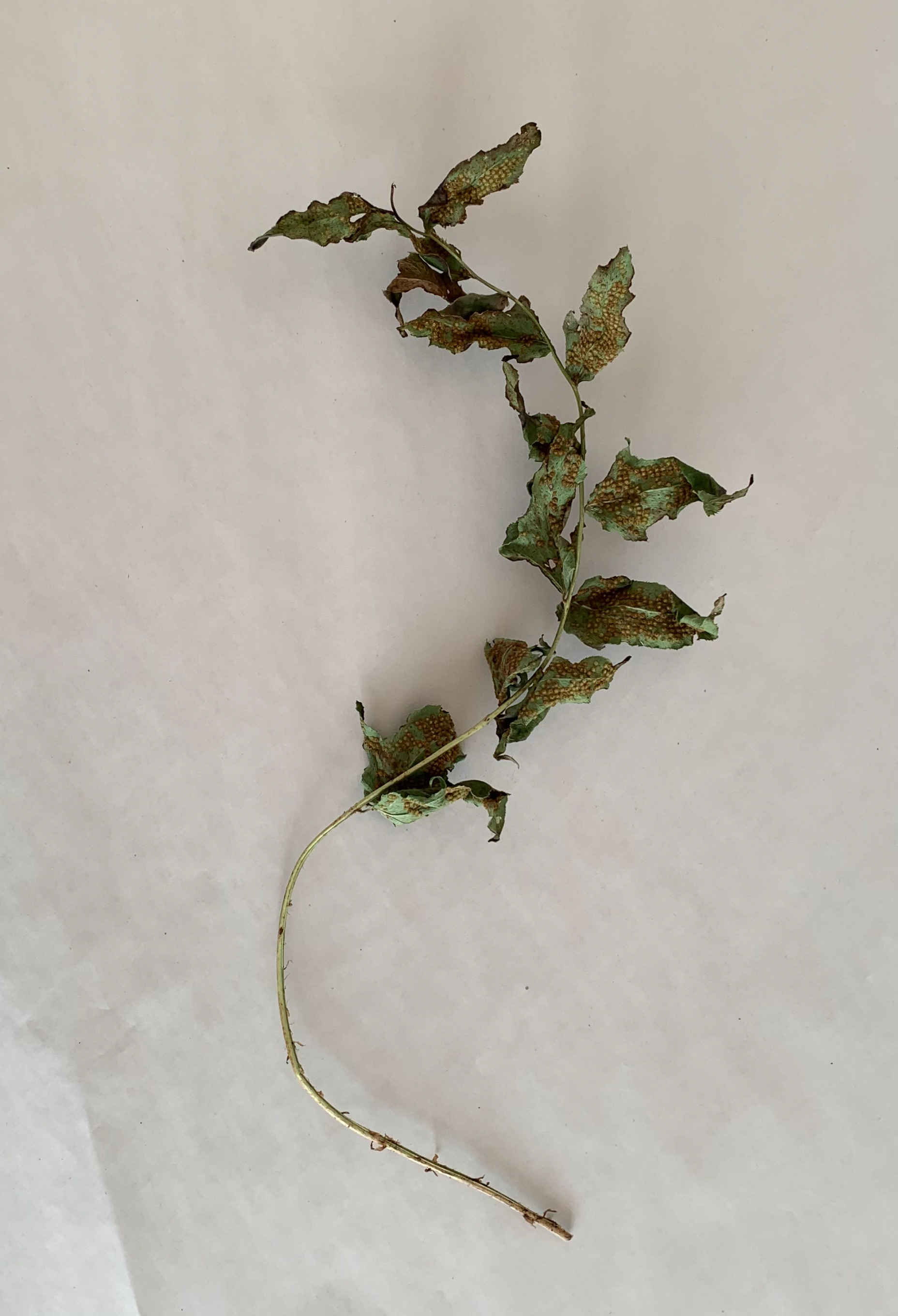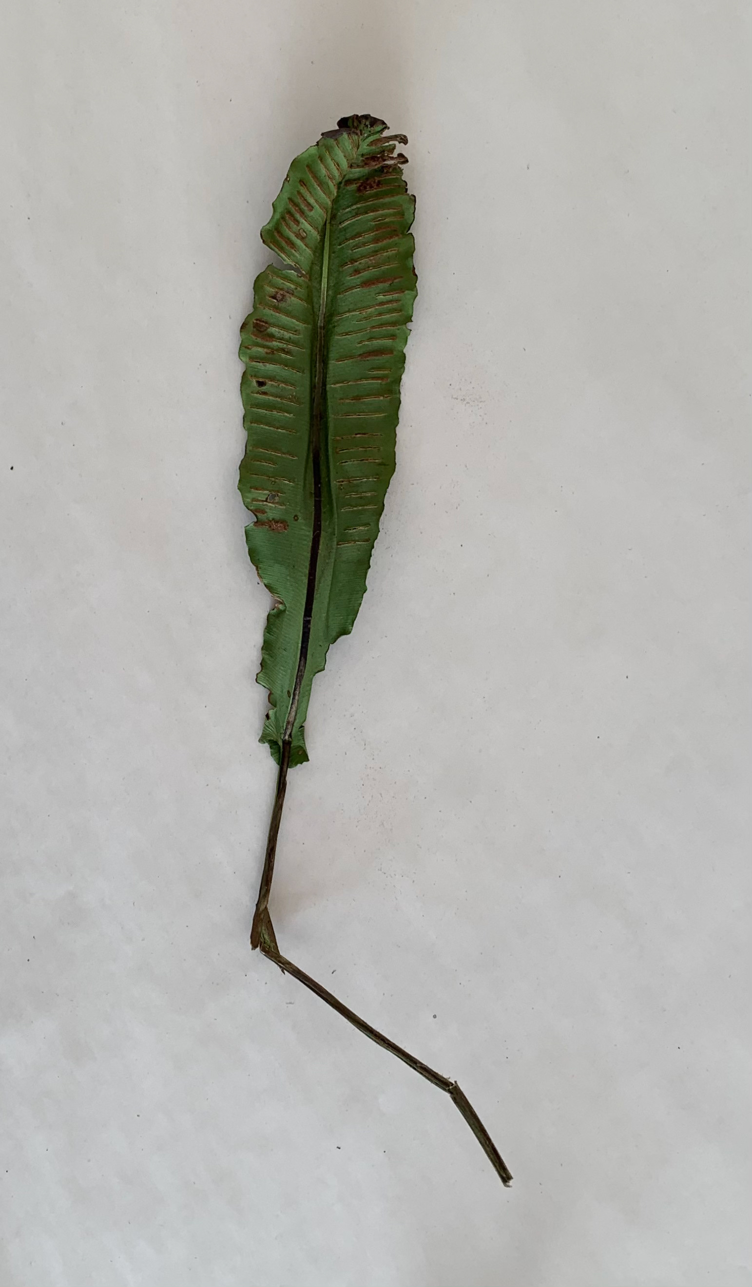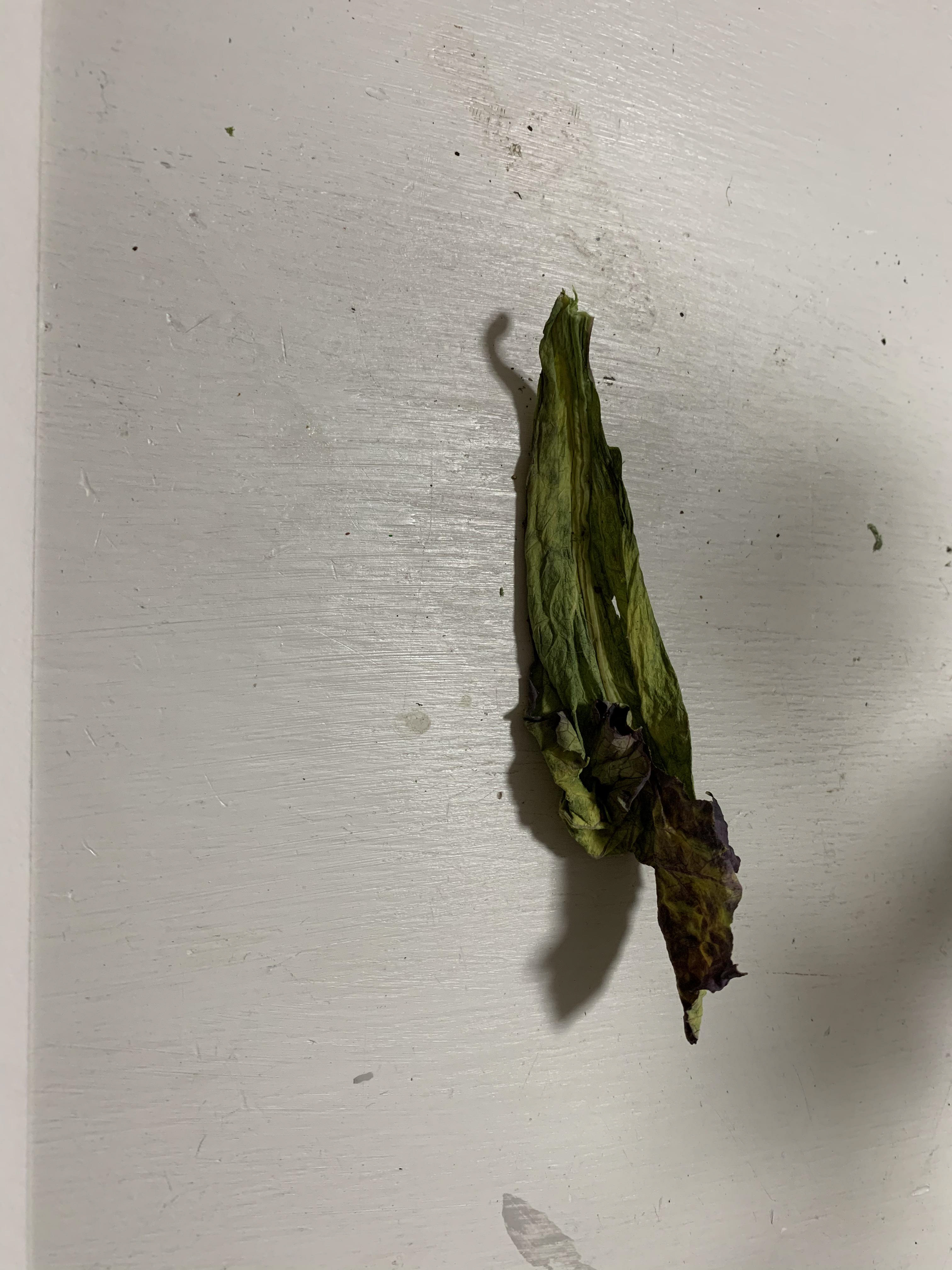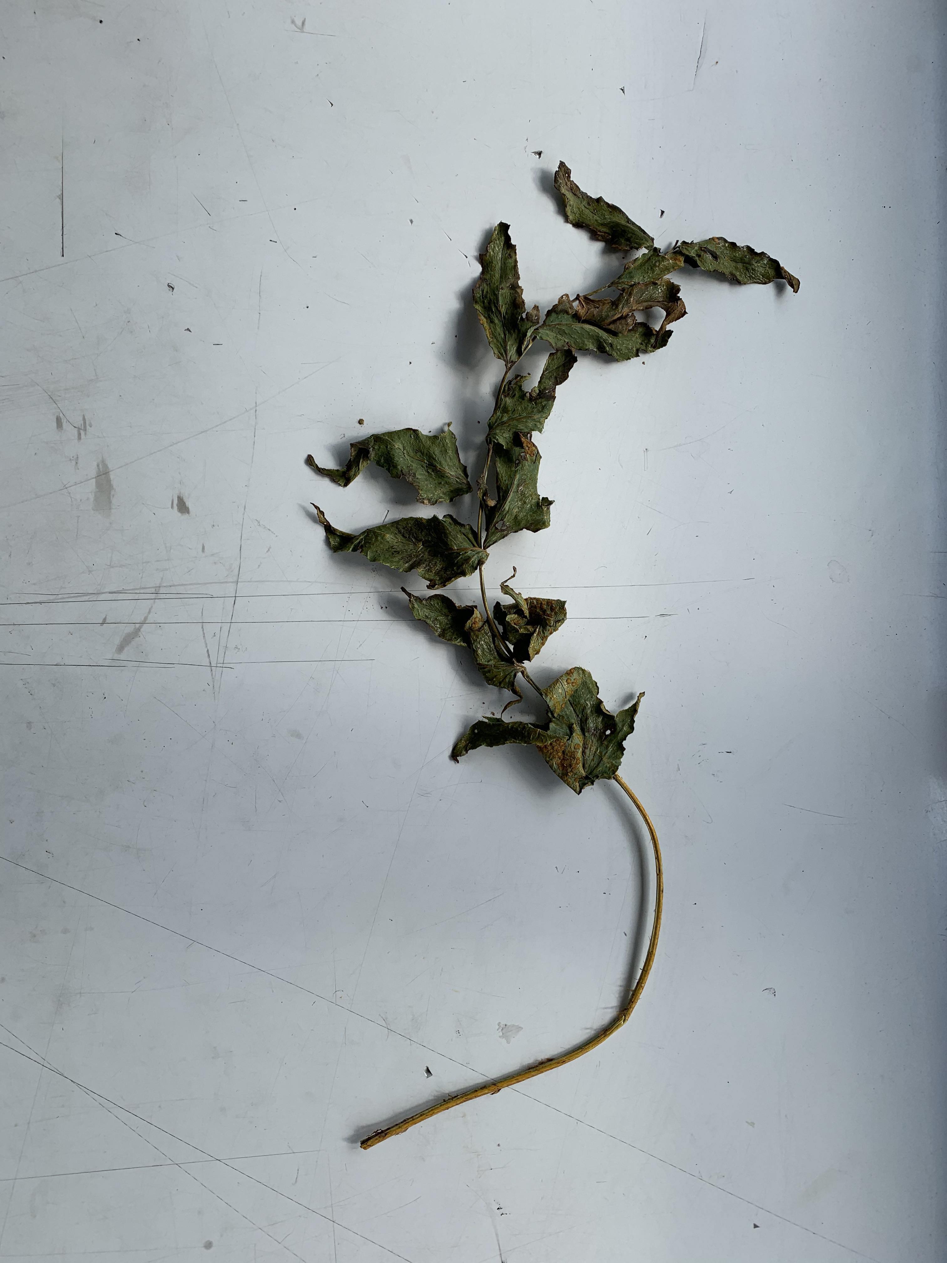 I took pictures of single leaves from a birds eye view on a plain background. The lines within the leaves and the lines and shapes formed are emphasised through use of the minimal background.